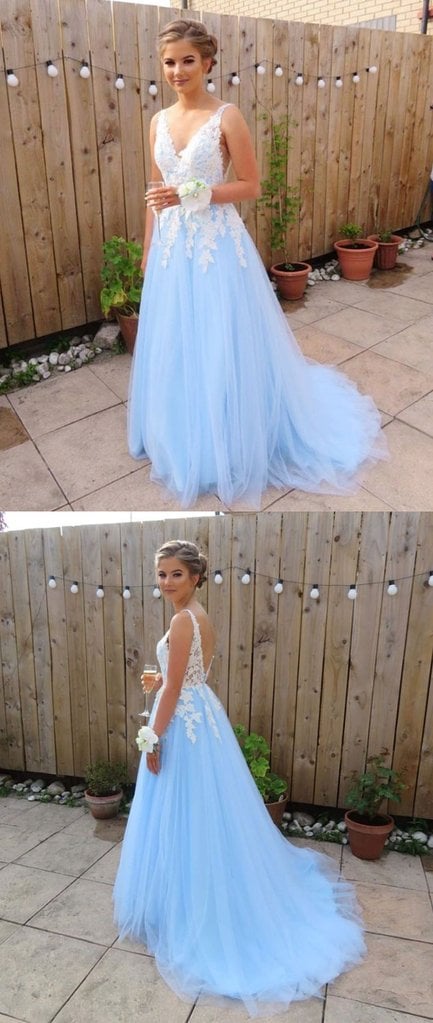 Ball Gown Evening Dress Tulle Prom Gowns Sky Blue Prom Dresses