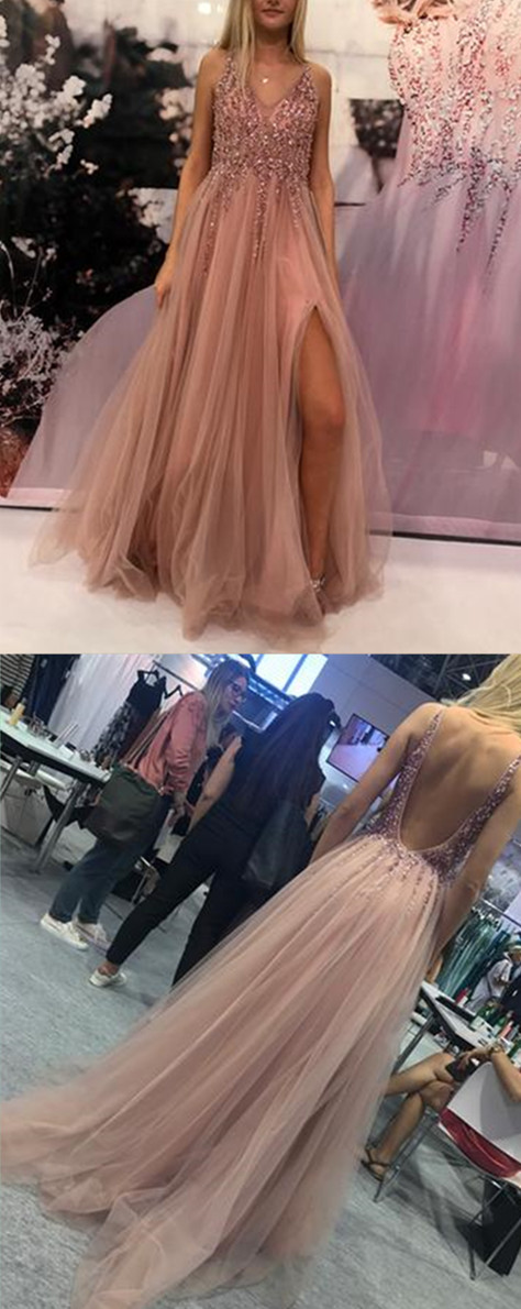 Beaded Evening Dress Prom Gowns Tulle Prom Dresses Z03