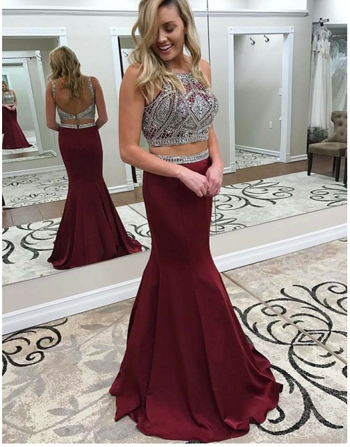 Two Piecesc Mermaid Evening Dress Burgundy Prom Gowns Prom Dresses Z07