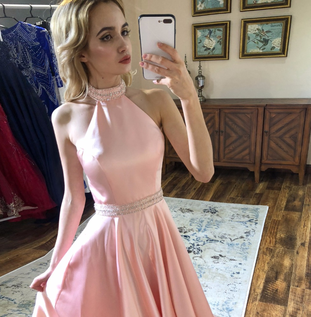 Backless Halter Beaded Evening Dress Prom Gowns Prom Dresses Z12