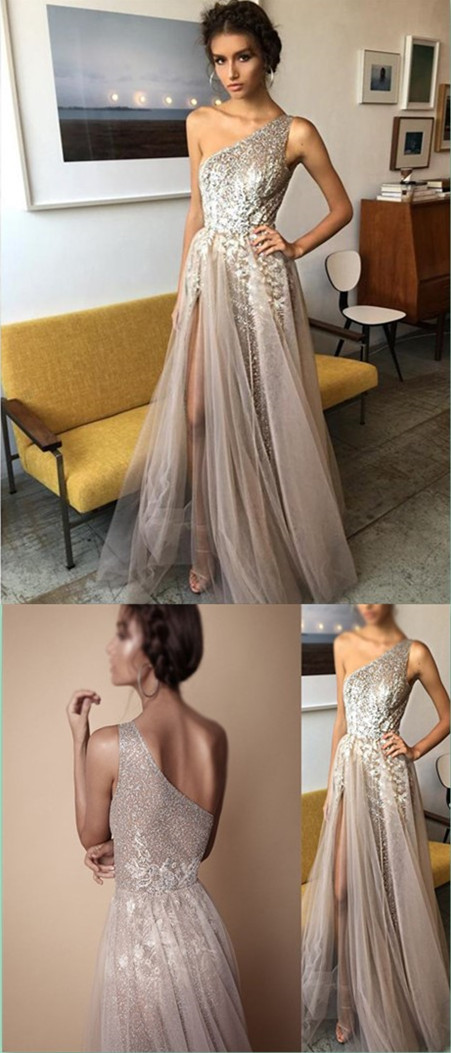 One Shoulder Sequins Evening Dress Prom Gowns,Prom Dresses Z25