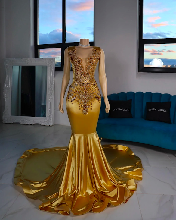 Gold Mermaid Sequined Formal Dress, Prom Gowns,Prom Dresses Z65