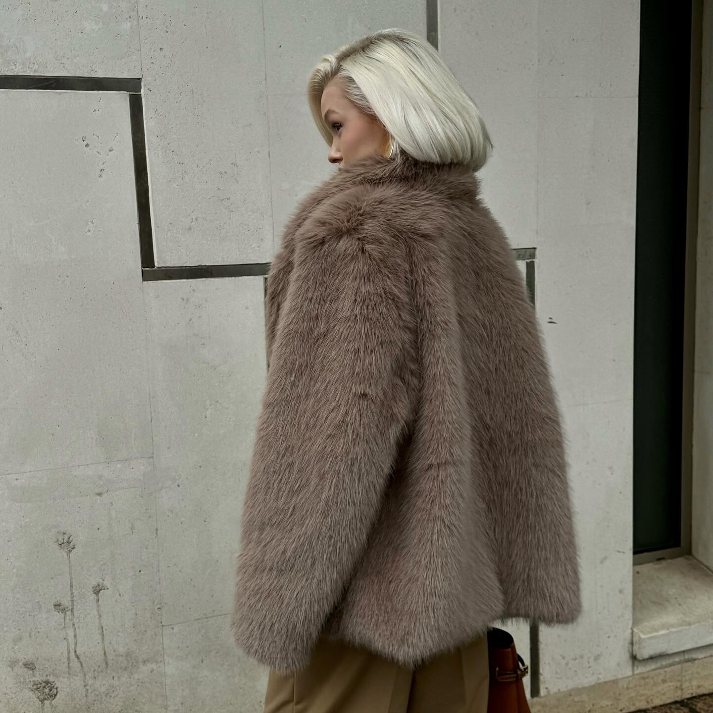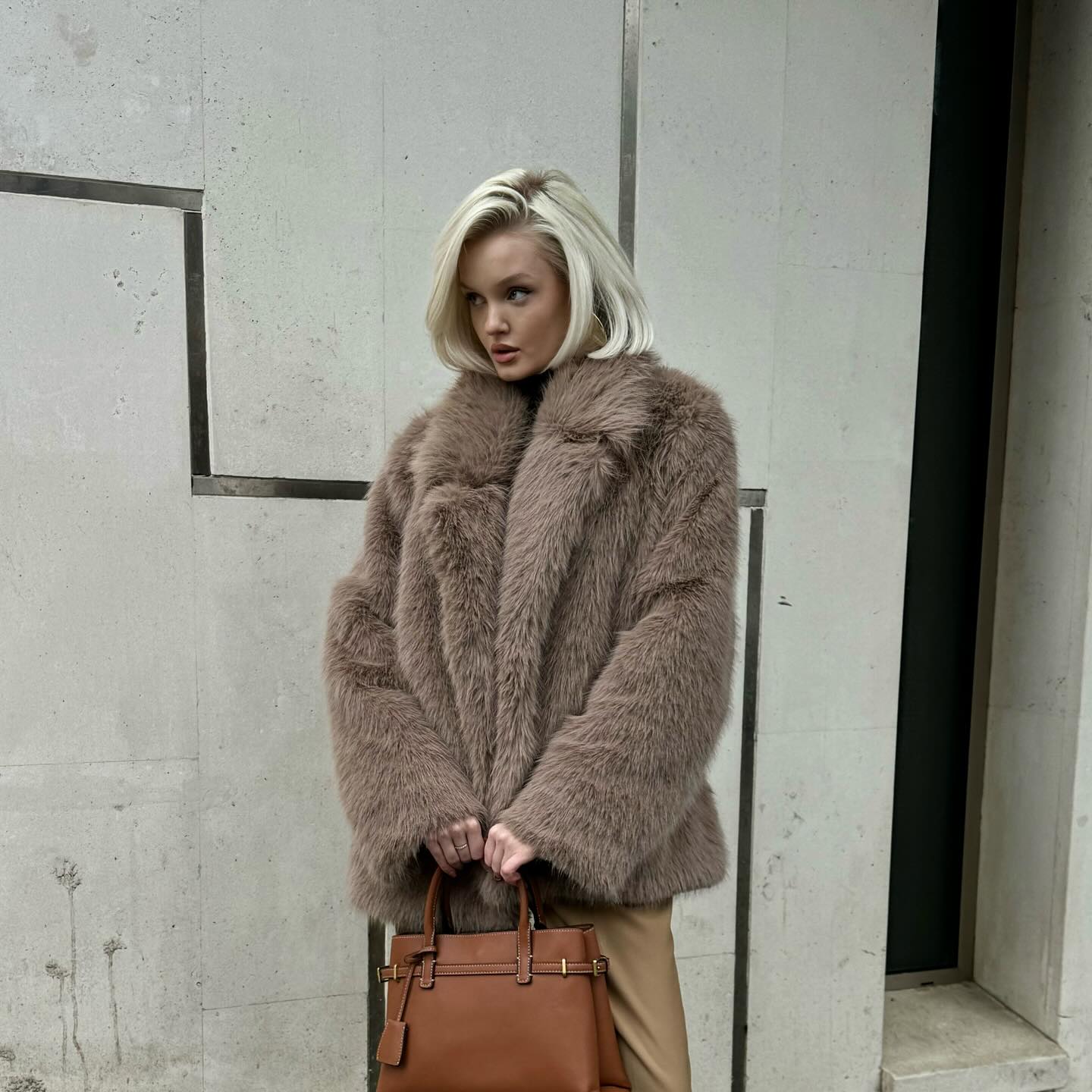 F16 Women's Faux Fur Coat Fluffy Faux Fur Jacket Long Sleeve Lapel Furry Winter Jackets Shaggy Parka Short Coat