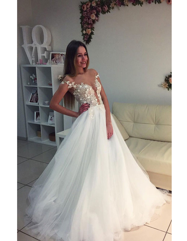 A-Line Charming Appliques wedding dress, lace wedding dress, cheap wedding dress, cheap wedding gown, bridal wedding dress,W13