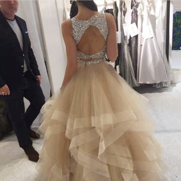 Z182 Ball Gown Two Pieces Beading Sleeveless Charming Prom Dress,Prom Dresses