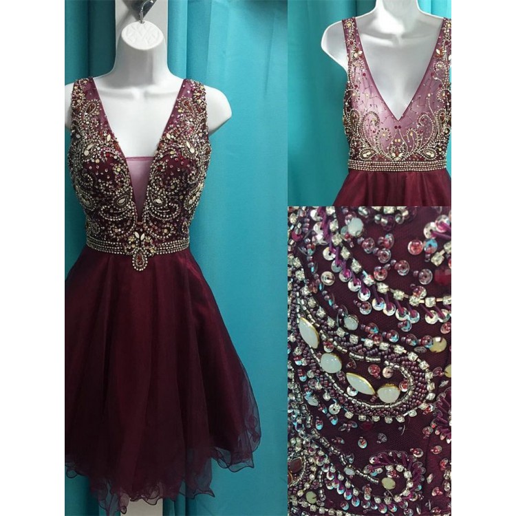 H106 Beaded Tulle Homecoming Dress,Short Homecoming Dress
