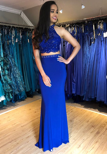 Z273 2019 Royal Blue Two Pieces Beaded Prom Dress,Prom Dresses,Prom Dress with Beaded ,Prom Gown,Long Prom Dresses