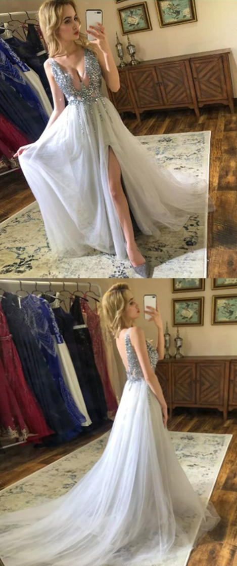 V-Neck Beaded Evening Dress Prom Gowns Prom Dresses Z11