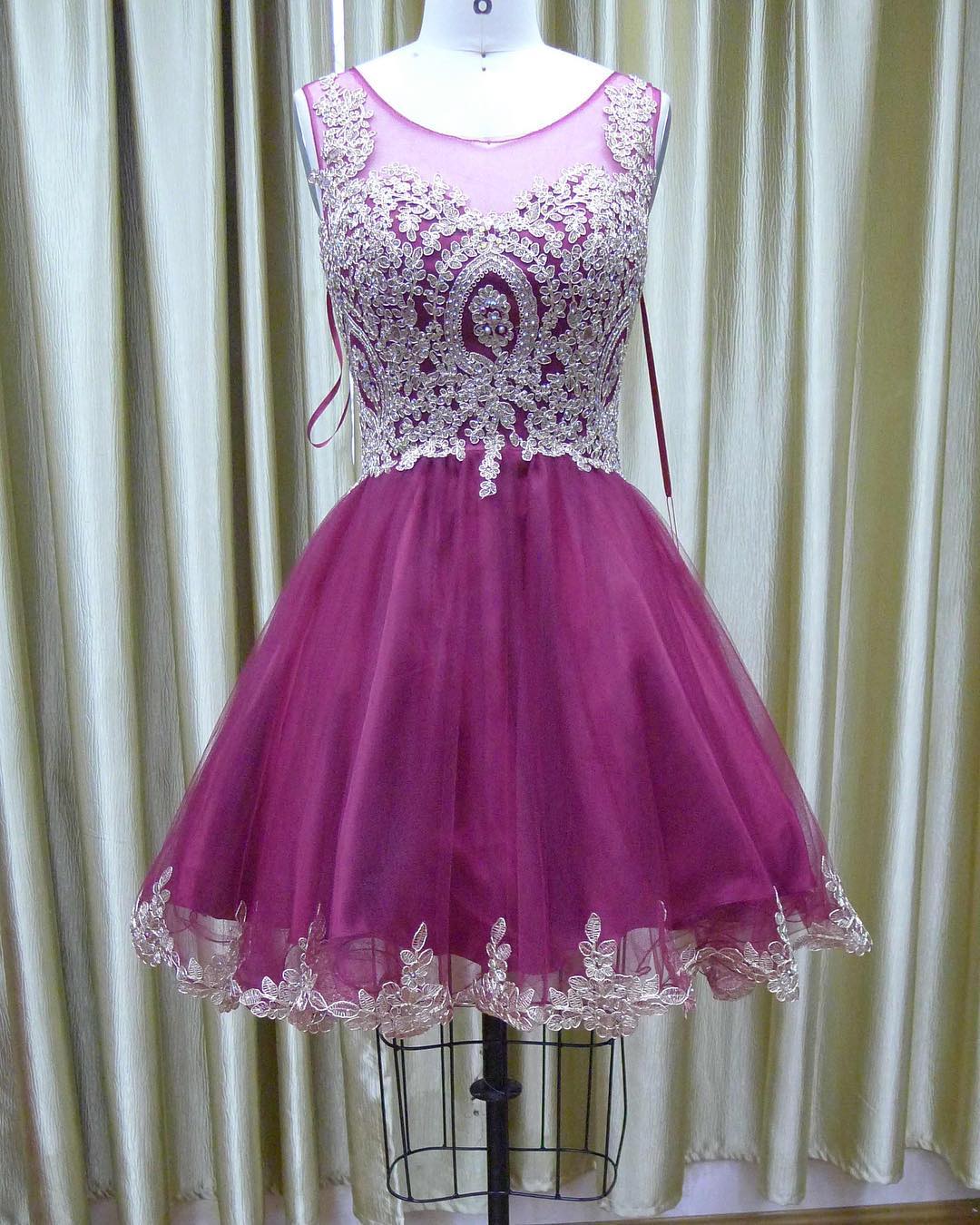 H109 Pretty Grape Lace Homecoming Dress,Short Homecoming Dress